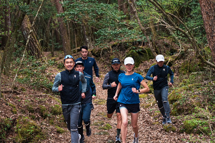 周回約10kmの西湖を2周してから、河口湖まで足を伸ばすというコースレイアウト。青々と色付く新緑に挟まれた林道を抜けると、目の前に広大な美しい湖が現れる。都会の喧騒から離れ、自然の中で身体を動かせる楽しさに、メンバー全員心が躍っていたに違いない。6名の集団を引くのは基本的にアンバサダー二人だが、不意にアタックを仕掛けてくる駒田さんも積極的なライドを魅せてくれる。棟さんに関して言えば、UTMFというハードコアなトレイルレースを終えたその足で合宿に参加してくれている。確実に疲労が溜まっている身体ではあるものの、佐渡に向けてトレーニングに意欲的だ。