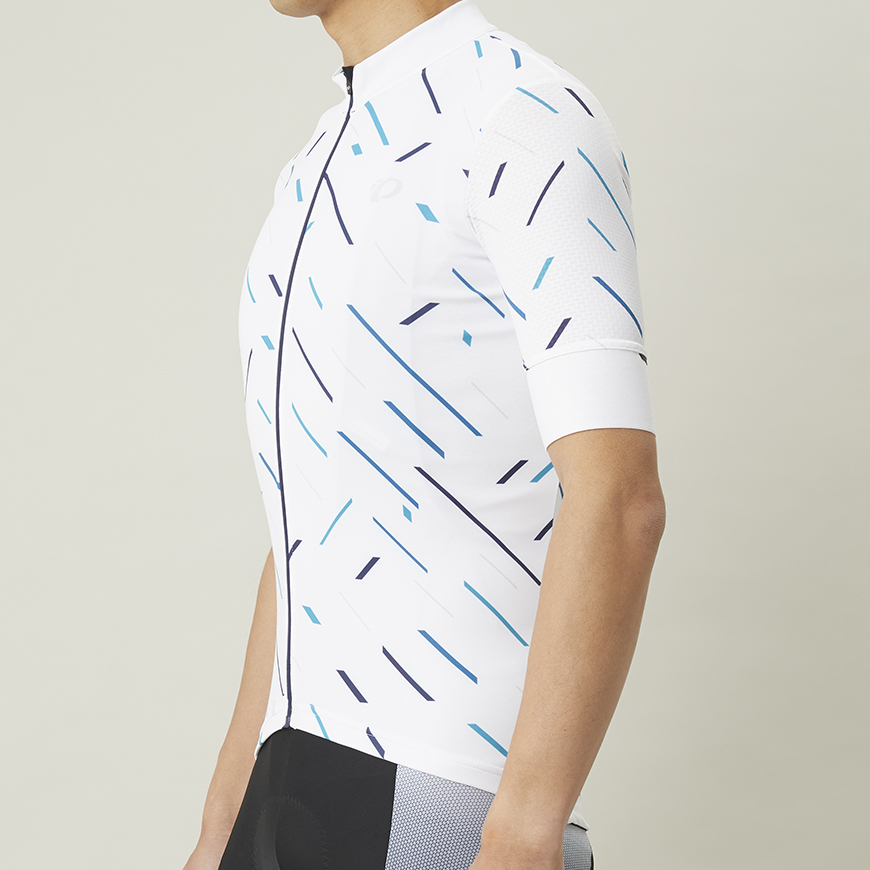 An attractive jersey with long half-sleeves, a slim silhouette and an urban-taste print design. It uses materials with excellent stretch properties and the ability to quickly absorb and dry sweat. As it fits closely to the body, it hardly flutters. The retroreflective strips on the back pockets ensure nighttime visibility.