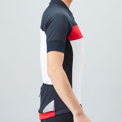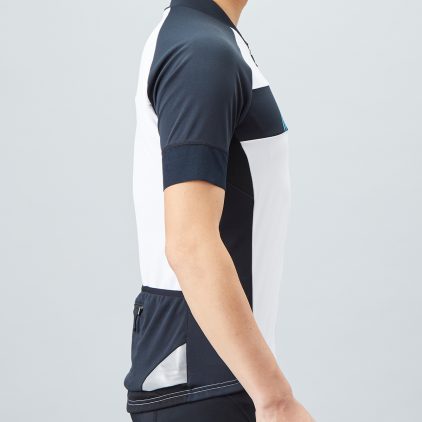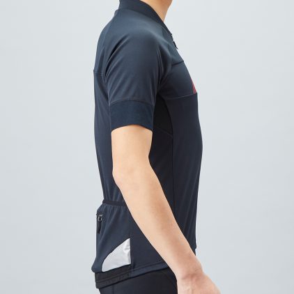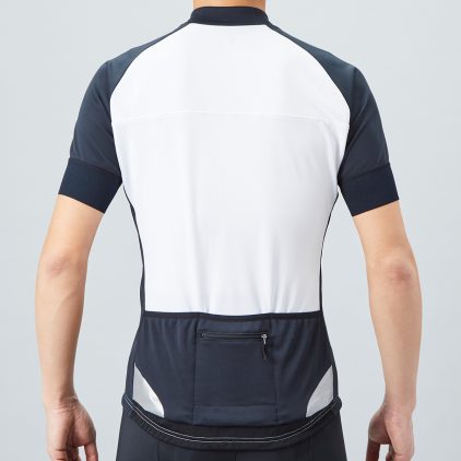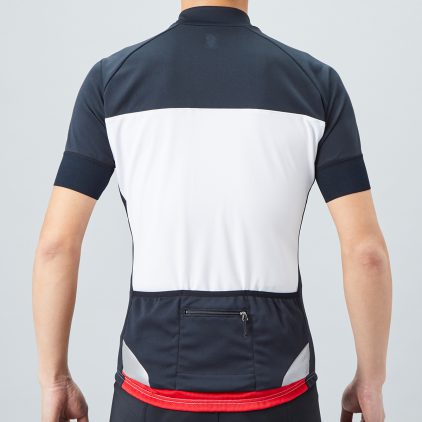 A cycling jersey with a simple design, equipped with breathability and UV cutting functions. It uses a material called “LUMIACE® UV,” which reduces physical fatigue by preventing sunburn. The areas under the armpit also use mesh to keep your skin dry at all times. The cuffs are lined with Russel Tape, which fits comfortably against your skin. Retroreflective strips are placed on the right and left back pockets to ensure nighttime visibility.