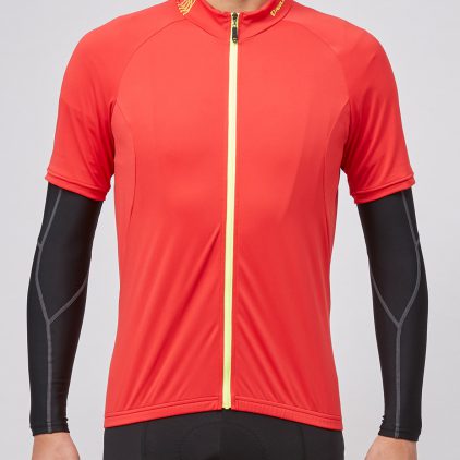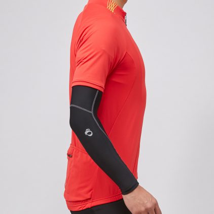 Wear these arm warmers in combination with jerseys. The insides use napped materials that keep you warm and feel soft against your skin. They can be folded compactly and carried in the back pocket, making it a convenient item for chilly seasons. The upper arm areas utilize Russel Tape, which fits comfortably and prevents the jersey from slipping, reducing the stress of tight-squeezing sleeves.