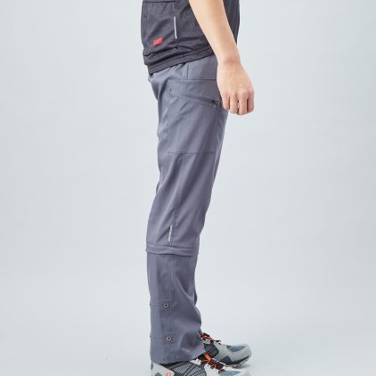 膝下が取り外せて七分丈にもなるロングパンツ、コットン素材ような自然で優しいはき心地で普段着としても使える便利なアイテムです。クランクによる汚れを防止するため、裾はスナップで調節可能です。右サイドには収納に便利なファスナー付きポケットが付いています。