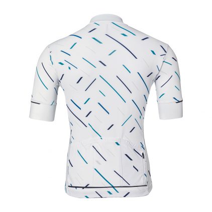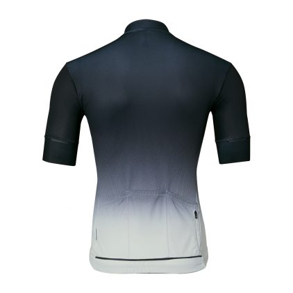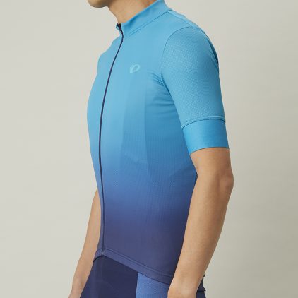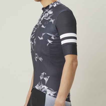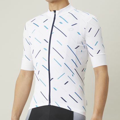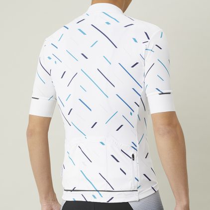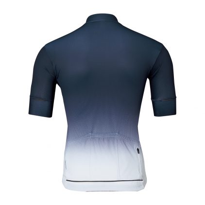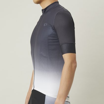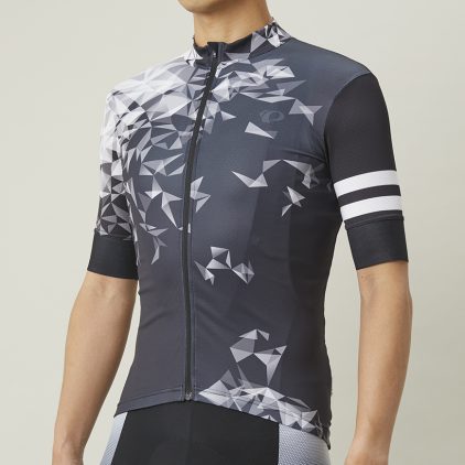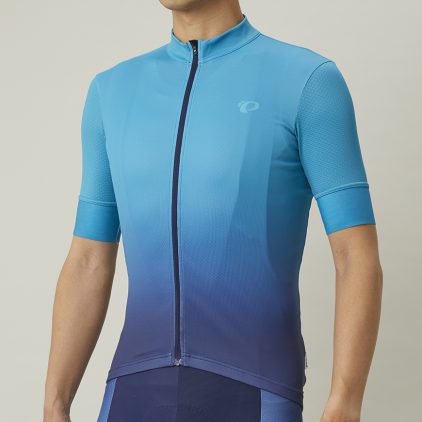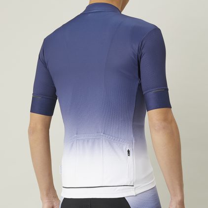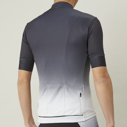 長めの袖丈と細身のシルエットとシンプルなグラデーションとジオメトリック柄のデザインが魅力のサイクルジャージです。ストレッチ性と吸汗速乾性に優れた素材を採用し、バタつきも少なくすっきりと身体にフィットします。バックポケットの再帰反射が夜間の視認性も確保しています。