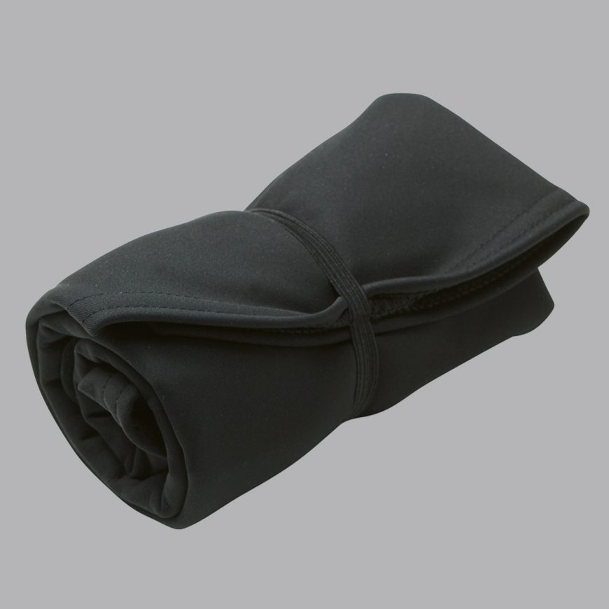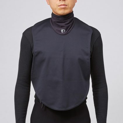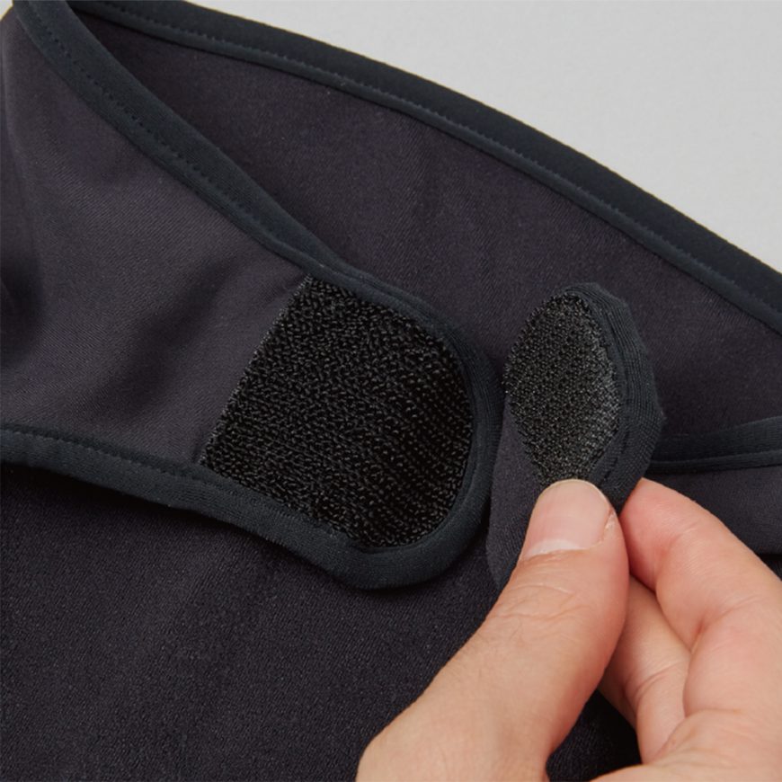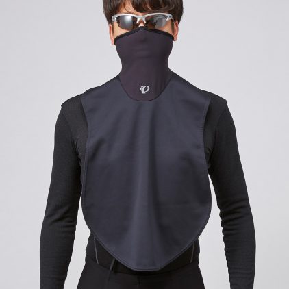 ジャケットやジャージの下に着用して、冷風があたる首から下の前面をカバーできる便利な保温アイテムです。後部はベルクロが付いており、暑くなったらすぐに着脱できます。ポケッタブルで小さくたためて持ち運びもできます。