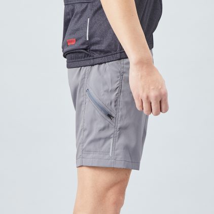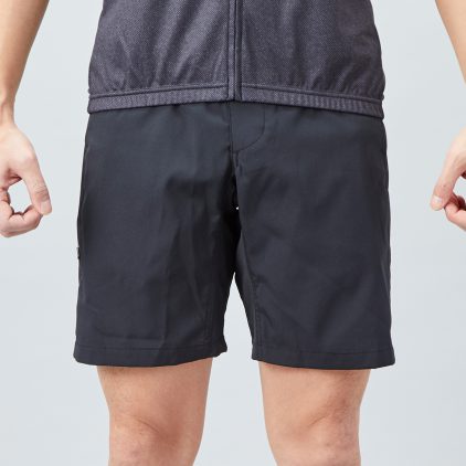 パッド付きのレーサーパンツやスパッツと合わせて着ることができ、輪行などのアフターウェアとしても最適です。スムースなペダリングを実現するストレッチ素材を採用、自転車走行時のコーディネートも楽しめる個性的なアイテムです。右前ポケット内側には鍵などをつけられるキーループが付いています。