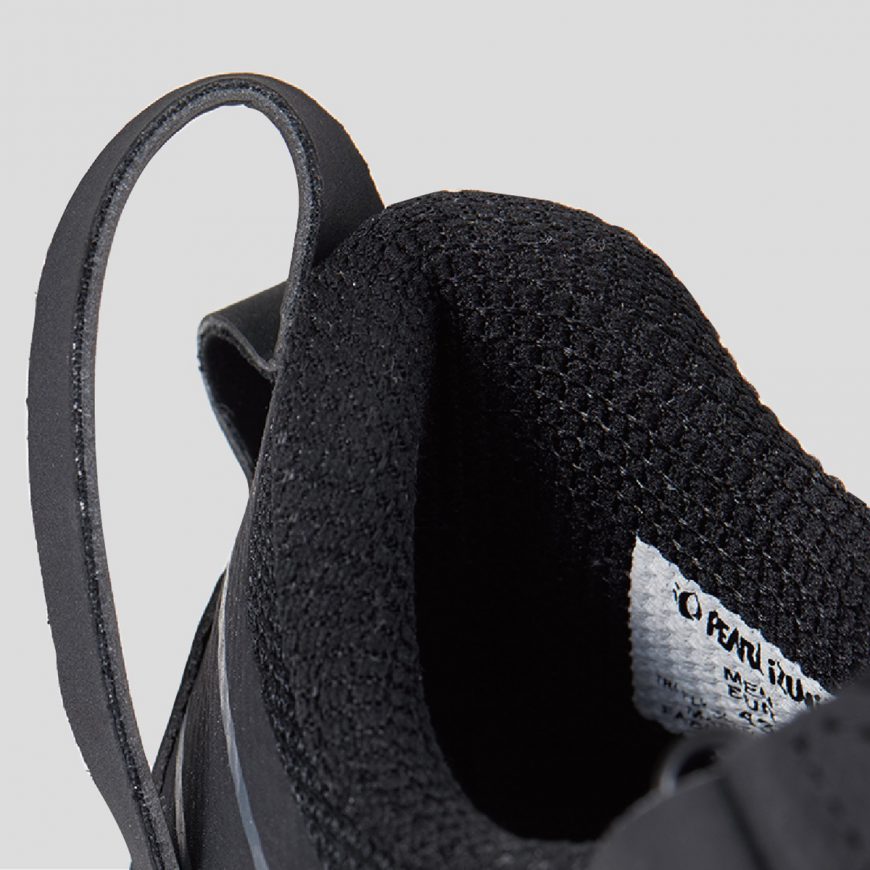 フィット感を調整する外脚側のシューズ引き手のストラップ
