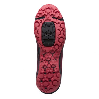 ダートからアスファルトまで多彩に対応するレディースサイクリングシューズです。ソックス無しでも快適に履けるスリップオン構造、アッパーのメッシュが通気性を確保します。