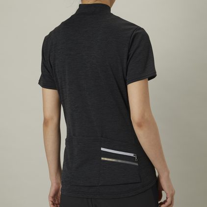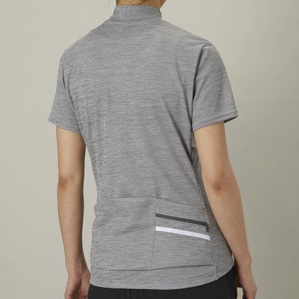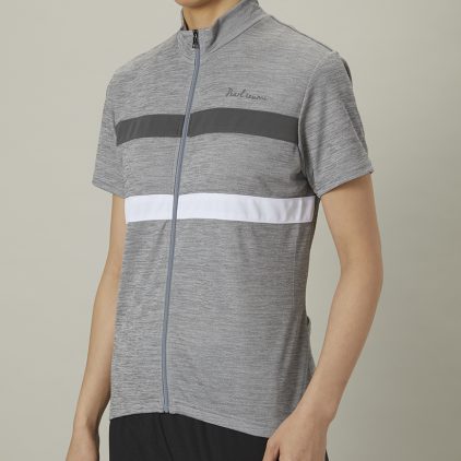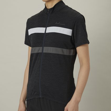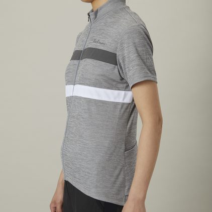 コーディネートしやすいカラーリングと杢柄のボーダーのデザインで街乗りにもぴったりのジャージです。普段着としてはもちろん、吸汗速乾といったサイクルウェアの基本性能も兼ね備え、本格的なツーリングにも十分対応しています。