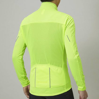 天候の変化による寒さや山の下りで受ける風を正面から防ぎます。ポケッタブルでコンパクトに収納できるので携帯に便利なアイテムです。スリムフィットで身体にぴったりとフィットしながらもストレッチ素材のため動きやすく、風によるバタつきも抑えます。背中はメッシュで通気性に優れ、撥水加工により小雨程度の水は弾きます。バックポケットを備えて機能性も高まりました。