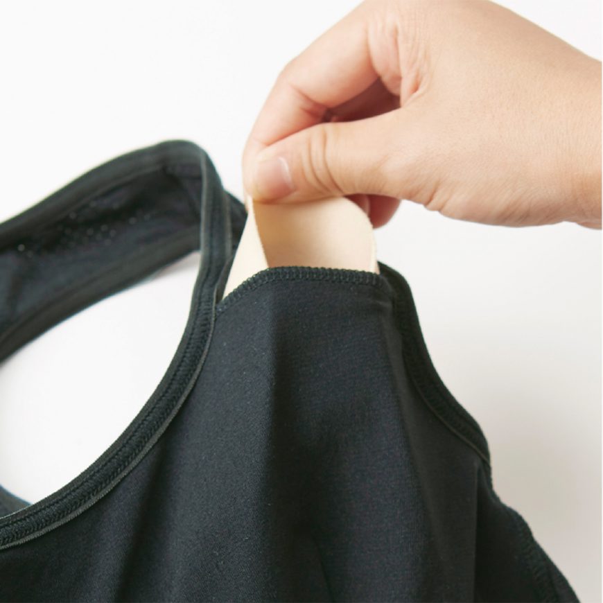 A highly functional sports inner wear that resolves the stuffiness of layering a sports bra and underwear shirt by combining the two. It features mesh knitting in some areas to feel soft against the skin and allow easy movements with its exceptional stretch qualities. It fits comfortably against the body. By partially changing the organization of knits along the bust area, it controls swaying and maintains comfort without feeling too tight. It can be utilized for a variety of sports activities.
