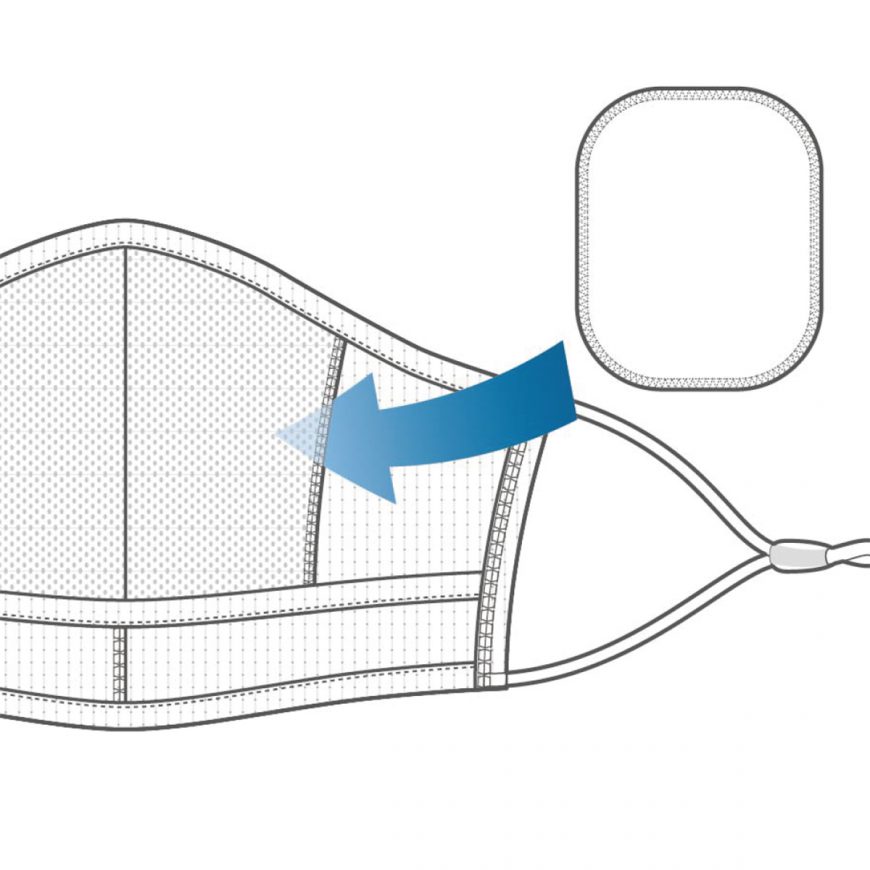 口部分が大きく開く仕様になっているため、呼吸を妨げず、不快なムレを積極的に開放します。 耳にかけるゴムにはアジャスターが付いているので、長さが調節でき、耳も痛くなりにくく、長時間お使いいただくことができます。サイズは2サイズご用意していますので、女性にもぴったりフィットします。付属品としてマスクのポケットに挟み込むための生地も同封しております。
