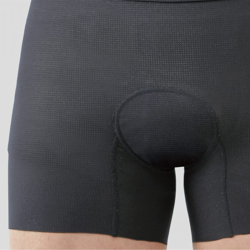 These inner shorts for racer pants were developed for cyclists who do not wish to wear racer pants without wearing anything underneath. The inside is lined with a fine, nap material to prevent friction burns along the thighs. The seams are made as thinly as possible and consideration is given to where they are placed to ensure comfort while pedaling and so they do not show through on the silhouette of the racer pants. The excellent breathability of the mesh material inhibits stickiness caused by sweat, giving the shorts a soft feel against the skin.
