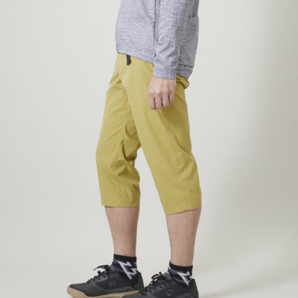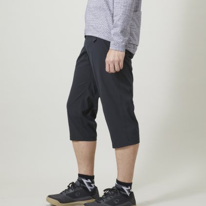 Three-quarter pants for comfortable town rides. They have a natural, soft feel against the skin, which is similar to that of cotton. The simple colors also broaden the possibilities of coordinating the colors with those of other clothes. Designed exclusively for biking, it allows for smooth pedaling and makes long rides comfortable. On the right side and on the back are zippered pockets, convenient for storing items.