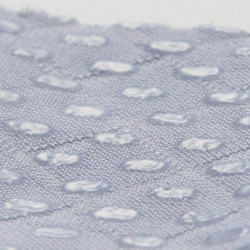 Rising hem prevention A specification designed to prevent hems from rising by adding a silicon working on the inside of the hems.