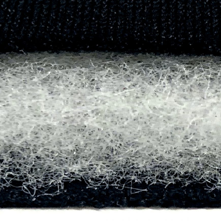 伸縮性に優れる薄手軽量の防風素材の表地の内側に中綿を採用