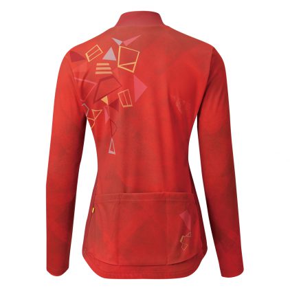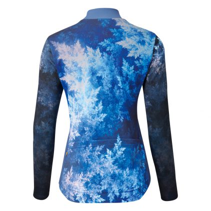 レディース専用パターンと、プリント柄がスポーツをする女性の美しさを引き立てる15℃対応のジャージです。ムレを抑える吸汗速乾性と適度な防風性、高い伸縮性で快適な着心地の秋冬の定番アイテムです。