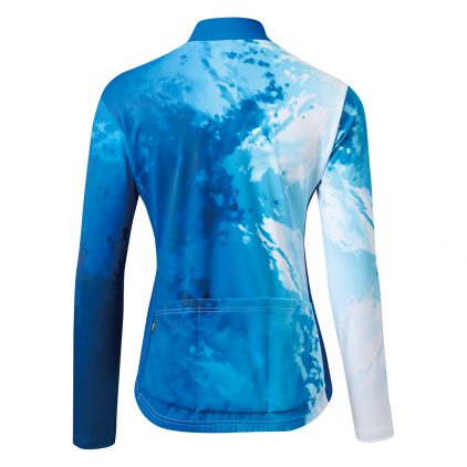 レディース専用パターンと、プリント柄がスポーツをする女性の美しさを引き立てる15℃対応のジャージです。ムレを抑える吸汗速乾性と適度な防風性、高い伸縮性で快適な着心地の秋冬の定番アイテムです。
