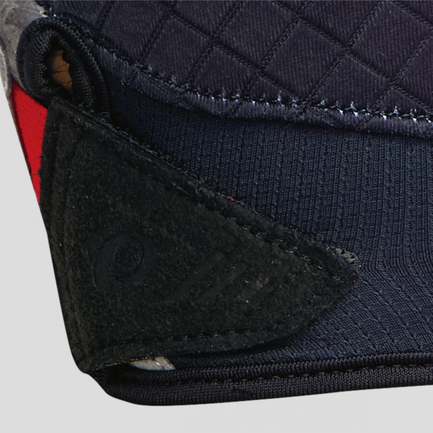 手首外側2箇所のゴムで手の平パッドのフィット感を調整できる特殊構造のベルクロ仕様