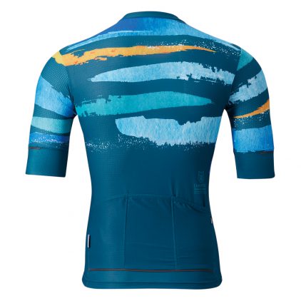 吸汗速乾性に優れるピンメッシュのストレッチ素材を採用した、高い通気性とさらなる動きやすさを備えた細身のレースフィットモデル。長めの袖丈と細身のシルエットに、シンプルでシャープなプリントデザイン。裾と両袖後部の再帰反射が夜間の視認性も確保しています。