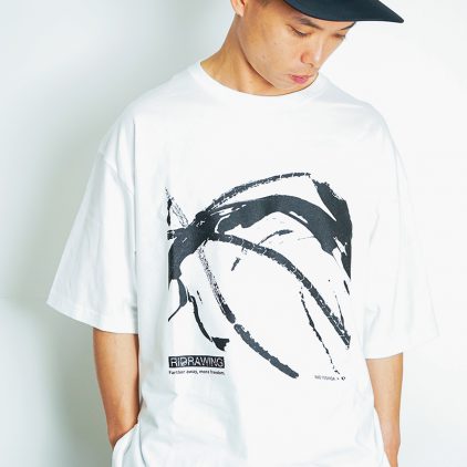RIDE(自転車に乗る)とDRAWING(描く)を融合させたRIDRAWING(ライドローイング) この独自の手法でアート作品を手がけるNAO YOSHIDAとパールイズミのコラボレーション 流行りの大き目のシルエットの綿100%のTシャツ。カジュアルなシーンにマッチします。
