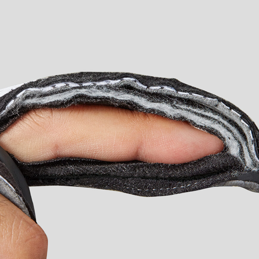 指先部分は中綿入りで保温性を高めた指先保温構造