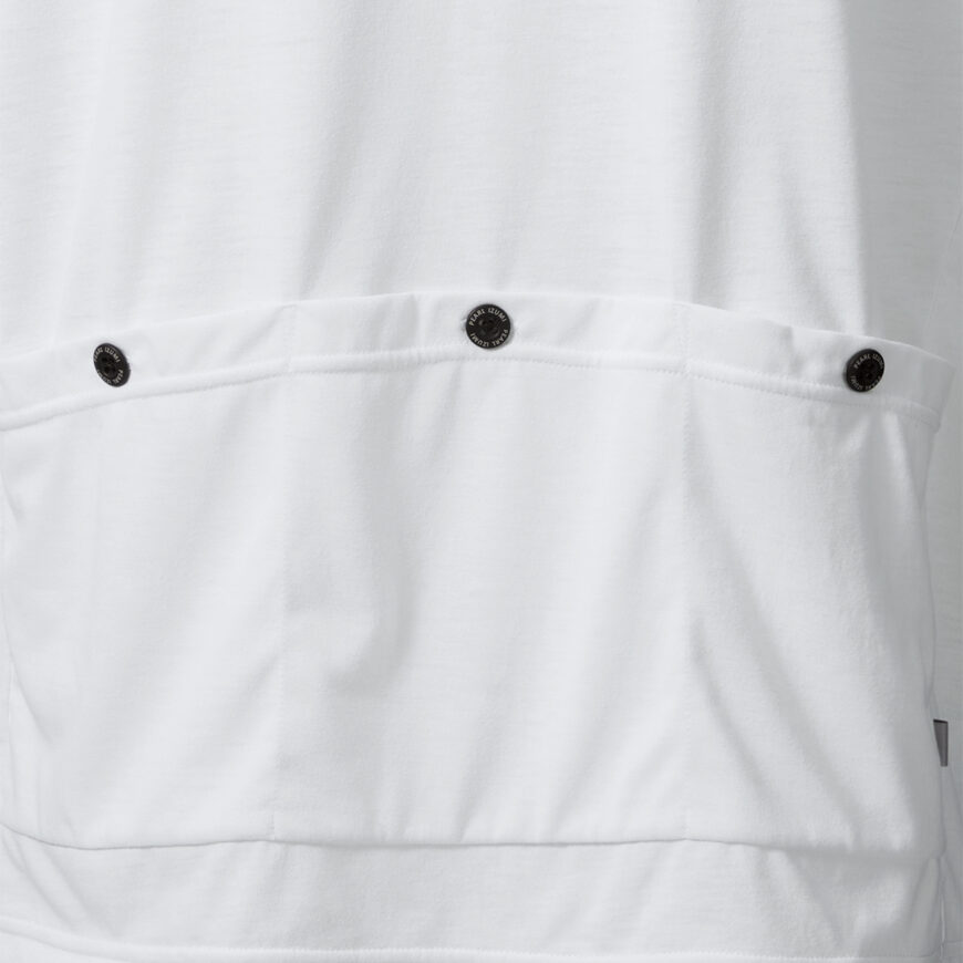 コットンのような肌触りと優れた吸汗速乾性。着やすいシンプルなデザインと、リサイクルされたポリエステル素材を採用した高機能Tシャツ。ボタン付きの3バックポケットとタグの再帰反射でサイクリングにも使える仕様に仕上げています。