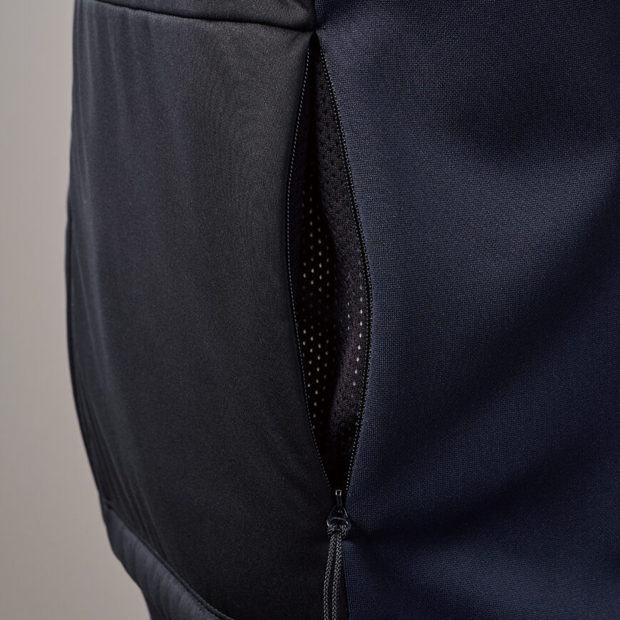 A windbreaker jacket for the extremely cold season. The inside is lined with fleece to provide excellent heat insulation and is compatible for 0°C weather. It has an excellent stretch to allow for easy movements, and zippers on both sides increase breathability when opened. It also has ventilation pockets to prevent stuffiness. It is light to wear and pursues a moderate level of warmth.