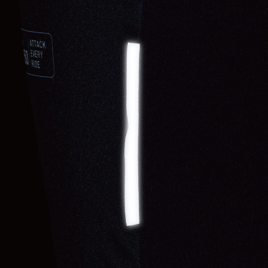 A jersey that uses the thin wind-breaking material “Wind Break® Light” on its front surface and is compatible for 10°C weather. The placement of a highly breathable material on the back reduces stuffiness. A slim, race-fit jersey with moderate heat insulation properties, which is perfect for people who ride actively during winter. Retroreflective strips are positioned on the right sleeve and under the back pocket to ensure nighttime visibility.