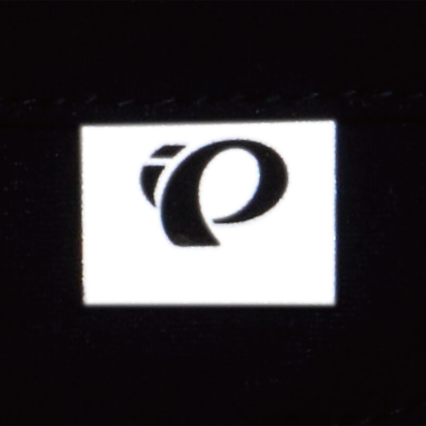 夜間の視認性を確保する右バックポケット下の再帰反射ロゴ