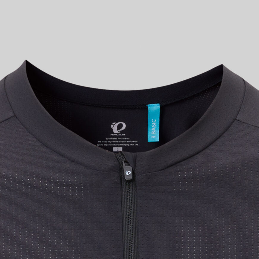 酷暑の際も走行風を取り込み涼しさを確保する低い襟の仕様(画像の襟はベーシックフィットですがレースフィットも同様の仕様です)