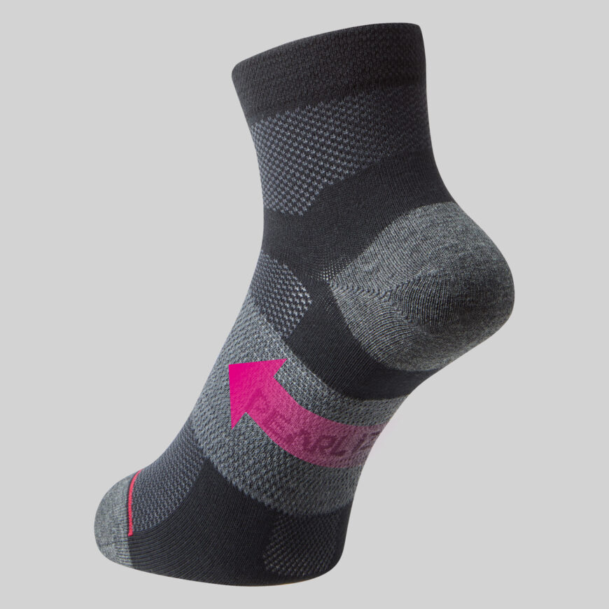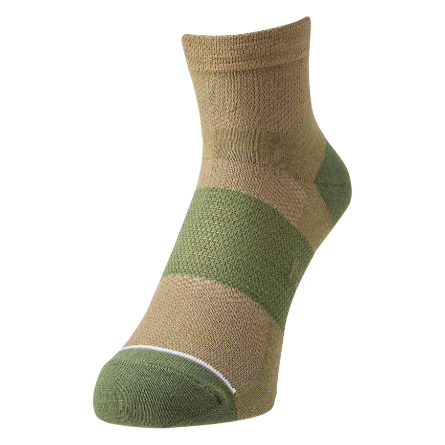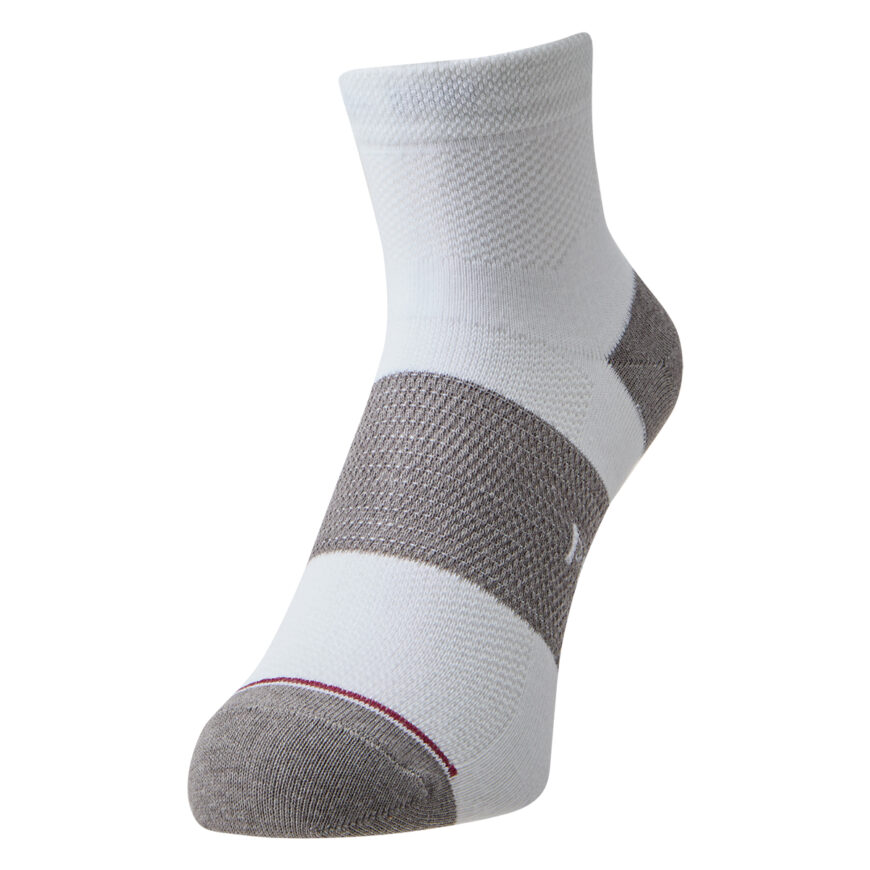 足の甲から足首上までメッシュにすることで通気性を高めてアップデートした夏の定番モデル。吸汗性に優れる速乾素材「クールマックス®」を採用し、ムレにくくドライな履き心地を実現。