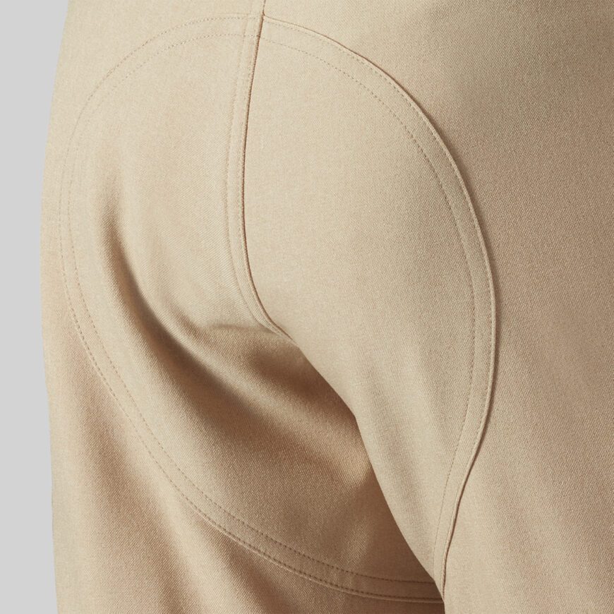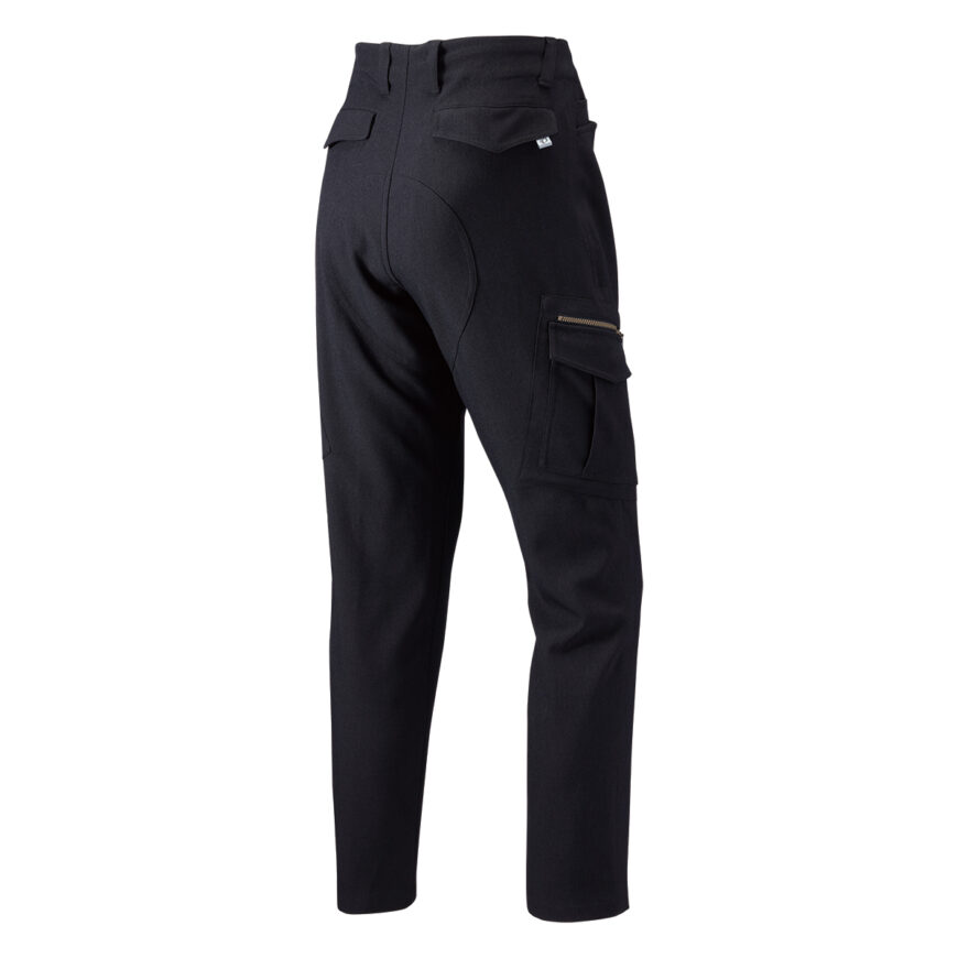 These three-quarter pants have a slender silhouette and can be used for town rides and also as daily clothing. It uses stretch materials to allow easy movements. Given that there are no seams along the center of the crotch, it lets you pedal smoothly. Retroreflective strips are positioned on both hems to ensure visibility. The hems can be drawn in, and the waist has a drawstring and belt loops.