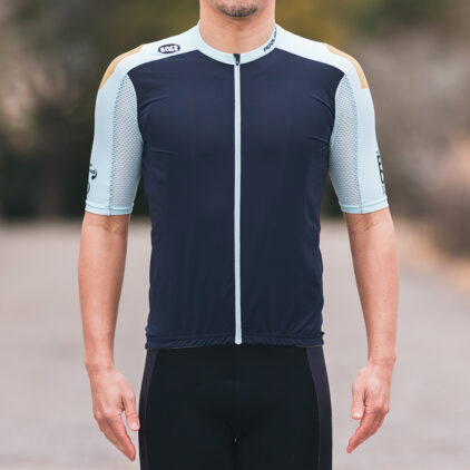 3種類の異なるメッシュ素材を配置し、通気性を最適化。春から酷暑期のライドまで活躍する、軽量かつ涼しい着心地の1着。