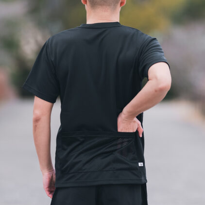 吸汗速乾性のある素材を採用した、バックポケット付きの半袖Tシャツ。街の中にも馴染むテイストで、普段使いや軽いサイクリングにも使えるアイテム。