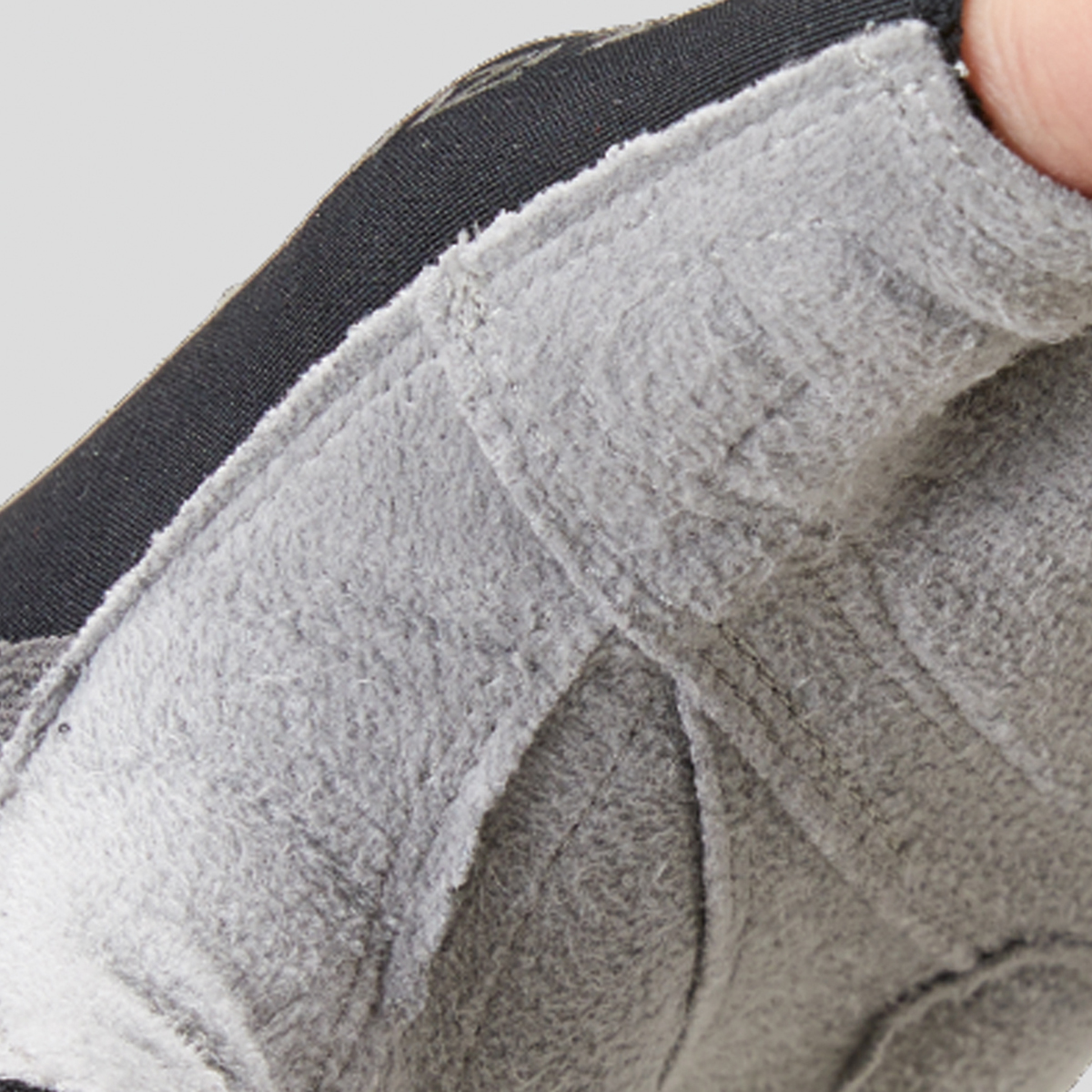 手の平のパッドは衝撃を吸収して、ハンドルを握る手も疲れにくいです。柔らかな手の平素材でフィット感に優れ、指股の縫い目を除いた事でゴロつきもなくしています。ハンドルも握りやすい世界基準のグローブです。親指以外の手の甲全面にフルプリント可能。