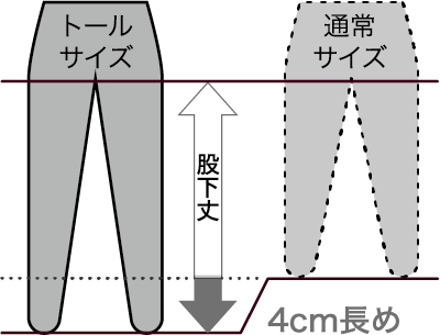 幅は通常サイズのまま丈だけ+4cm長めにしています。